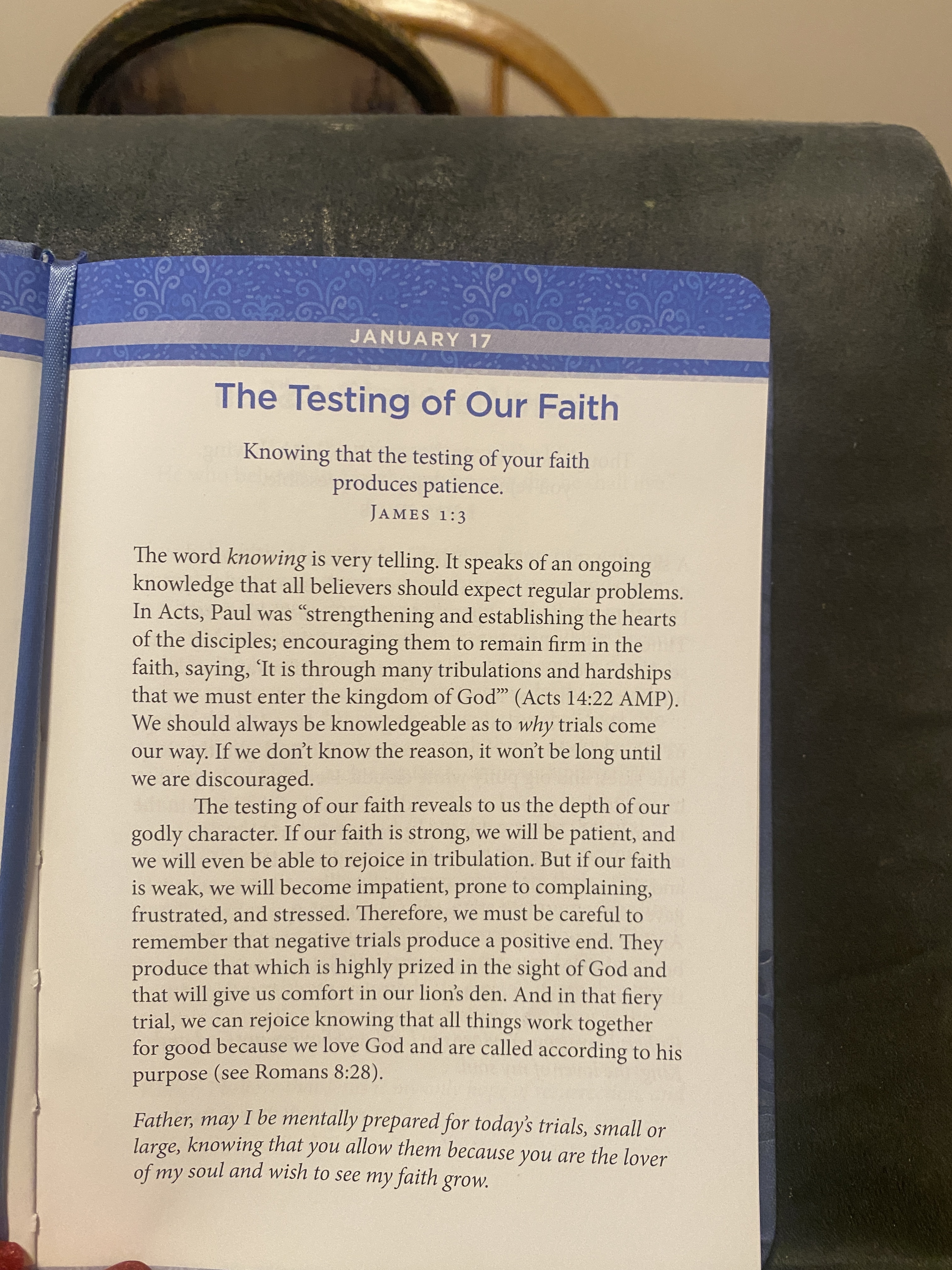 Jan. 16, today’s scriptures the first book of Moses, called Genesis ( 47-50 ) & the daily devotion.
